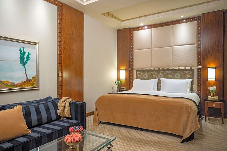 Large room offering a DVD player and a view of Jerusalem's Old City.